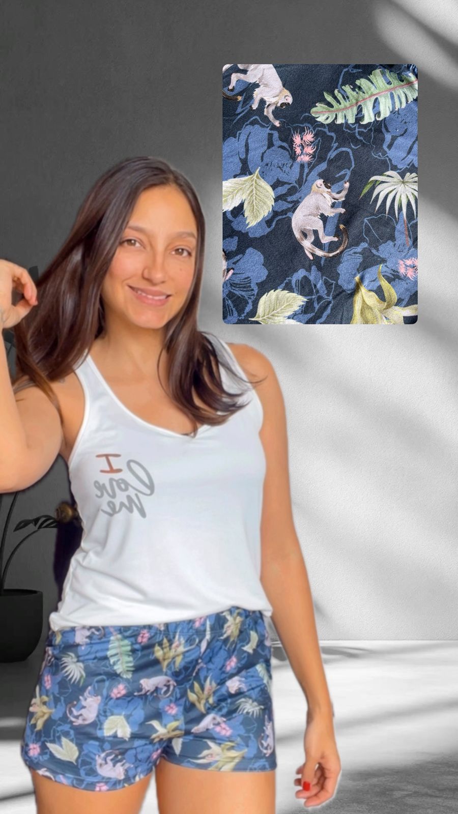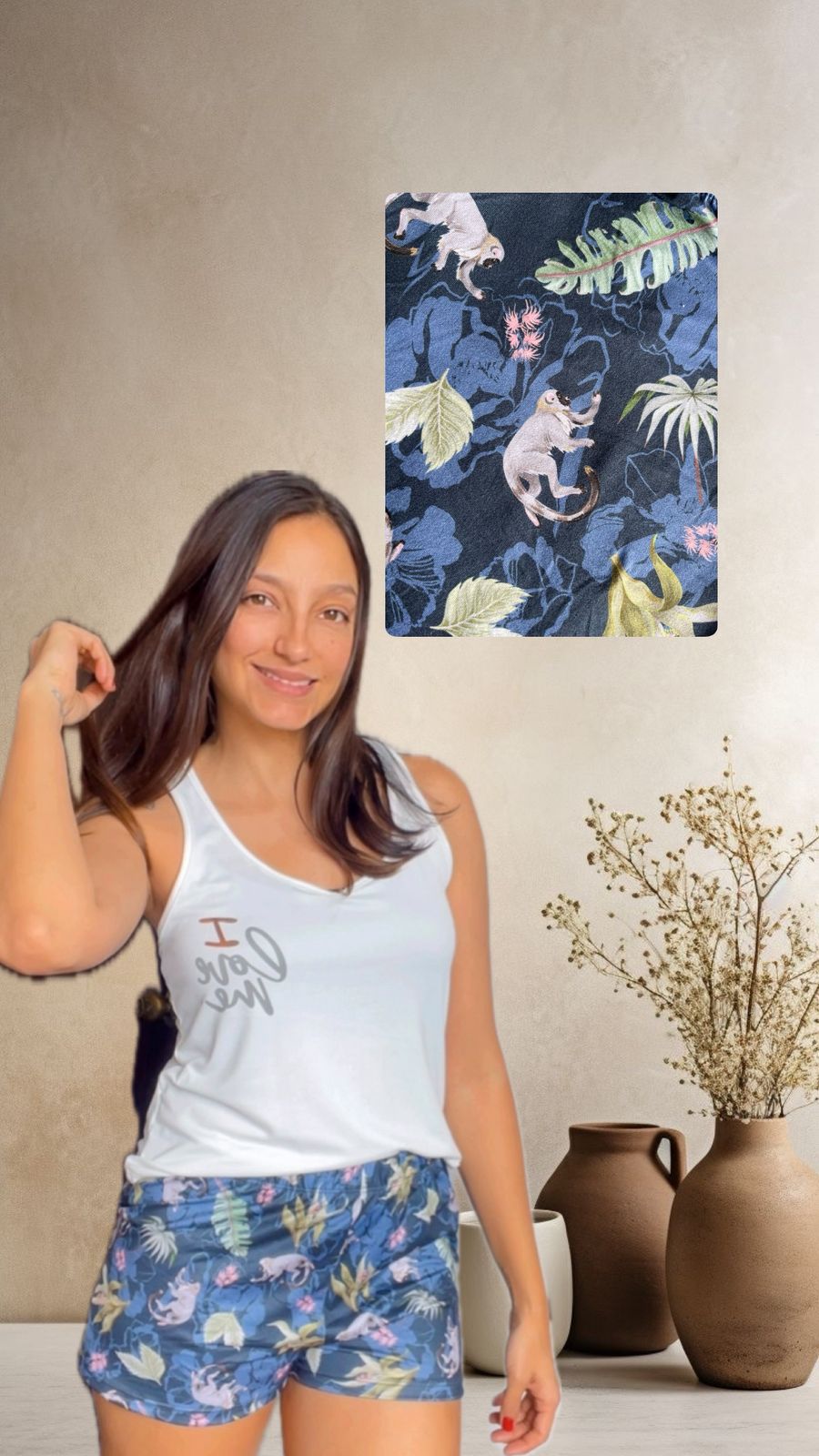 Pijama en short, elaborada en piel de durazno, la manera perfecta de mantenerte fresca y cómoda, con blusa en forma de esqueleto, es el match perfecto para descansar o dormir.